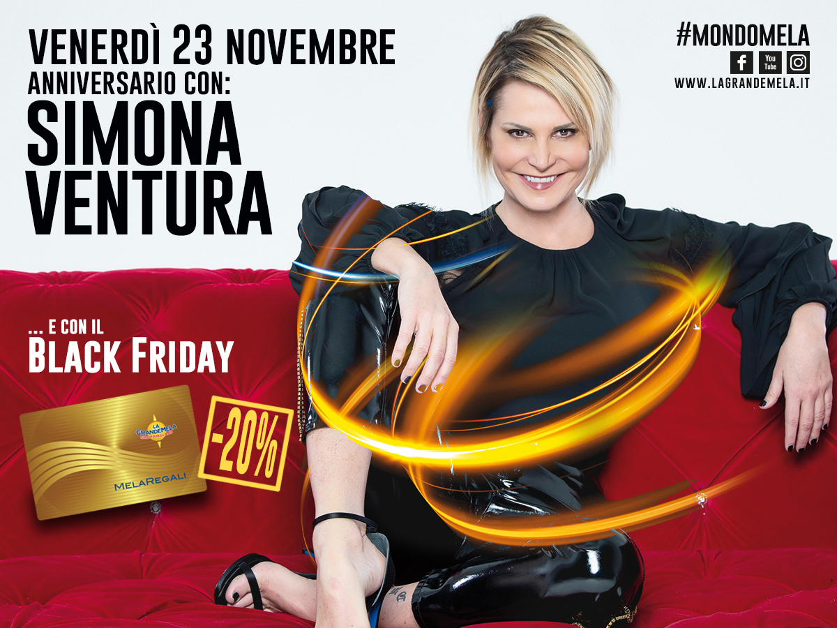 Venerdì pomeriggio il Centro Commerciale LaGrandeMela vi invita a festeggiare il suo anniversario! Vi aspettiamo per il taglio della torta con un ospite speciale: Simona Ventura!