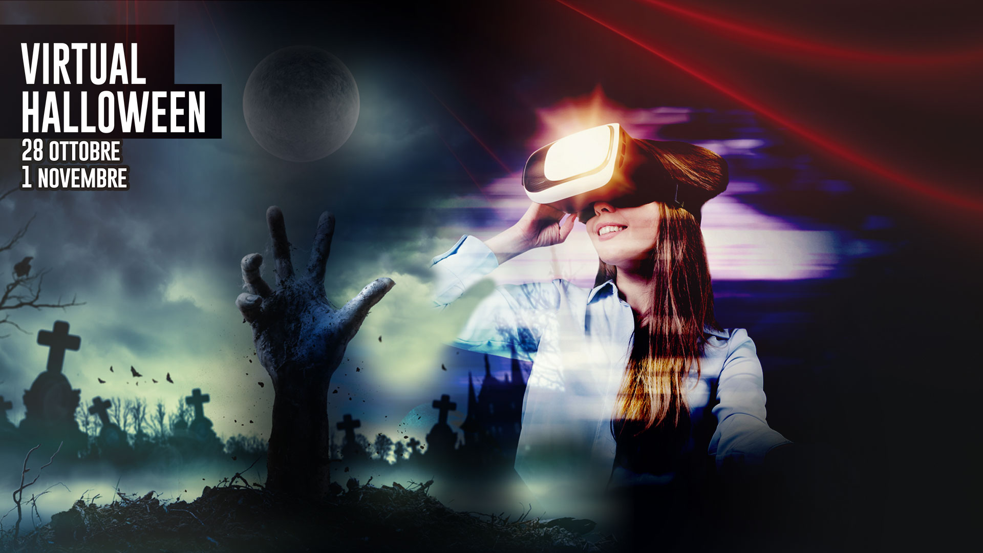 Esperienze virtuali da brivido: per Halloween abbiamo pensato a qualcosa di avvincente! Dal 28 ottobre al 1 novembre, verrete catapultati nelle dimensioni virtuali di Halloween Virtual Experience, il simulatore d’azione a prova di urlo, vi aspettiamo!