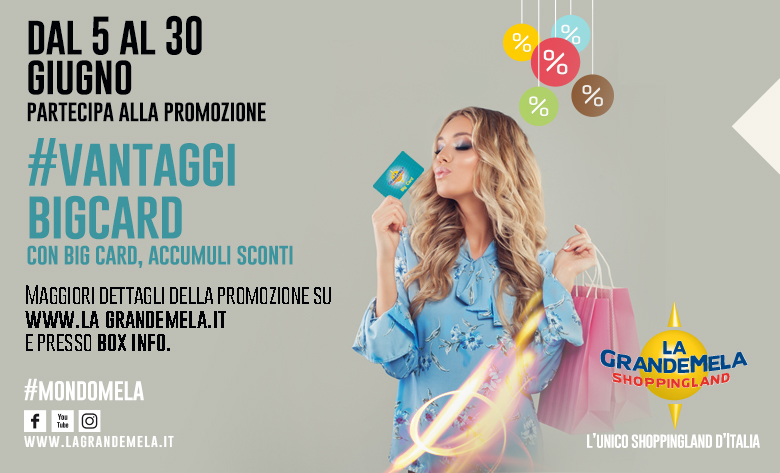 Approfitta della promozione Vantaggi Big Card: con la Big Card La Grande Mela accumuli sconti da trasformare in buoni shopping!