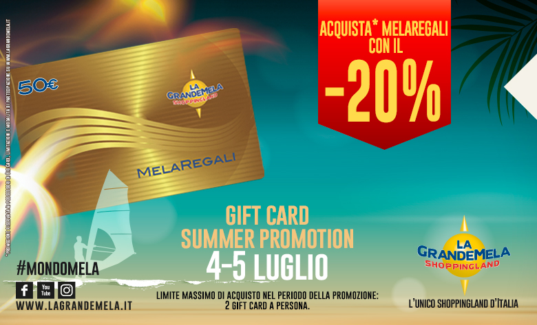 Solo il 4 e il 5 Luglio dalle 9 alle 21 all`Infopoint i possessori della Big Card potranno acquistare la gift card de La GrandeMela con il 20% di sconto!
