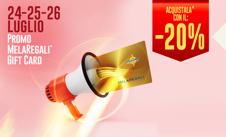 Solo il 24, 25 e 26 Luglio dalle 9 alle 21 all`Infopoint i possessori della Big Card potranno acquistare la gift card de La GrandeMela con il 20% di sconto!