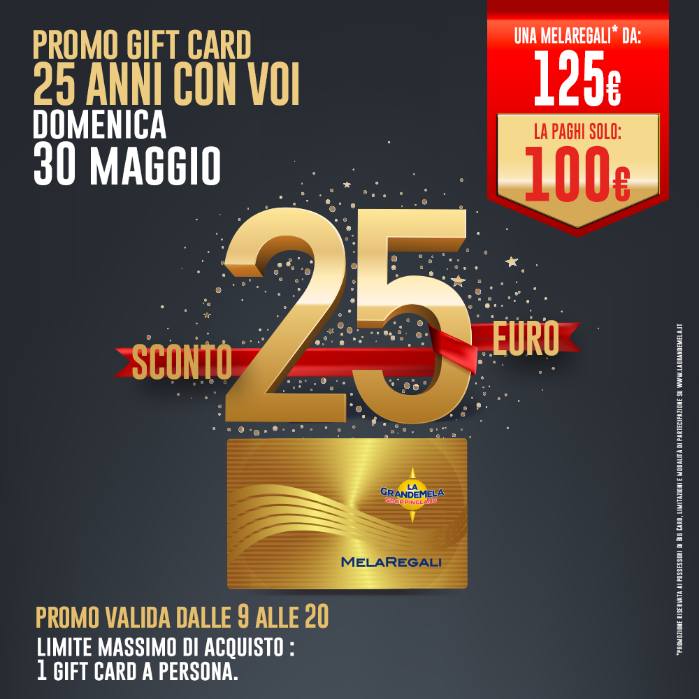 Solo domenica 30 maggio potrai acquistare a €100 una Melaregali del valore di €125.