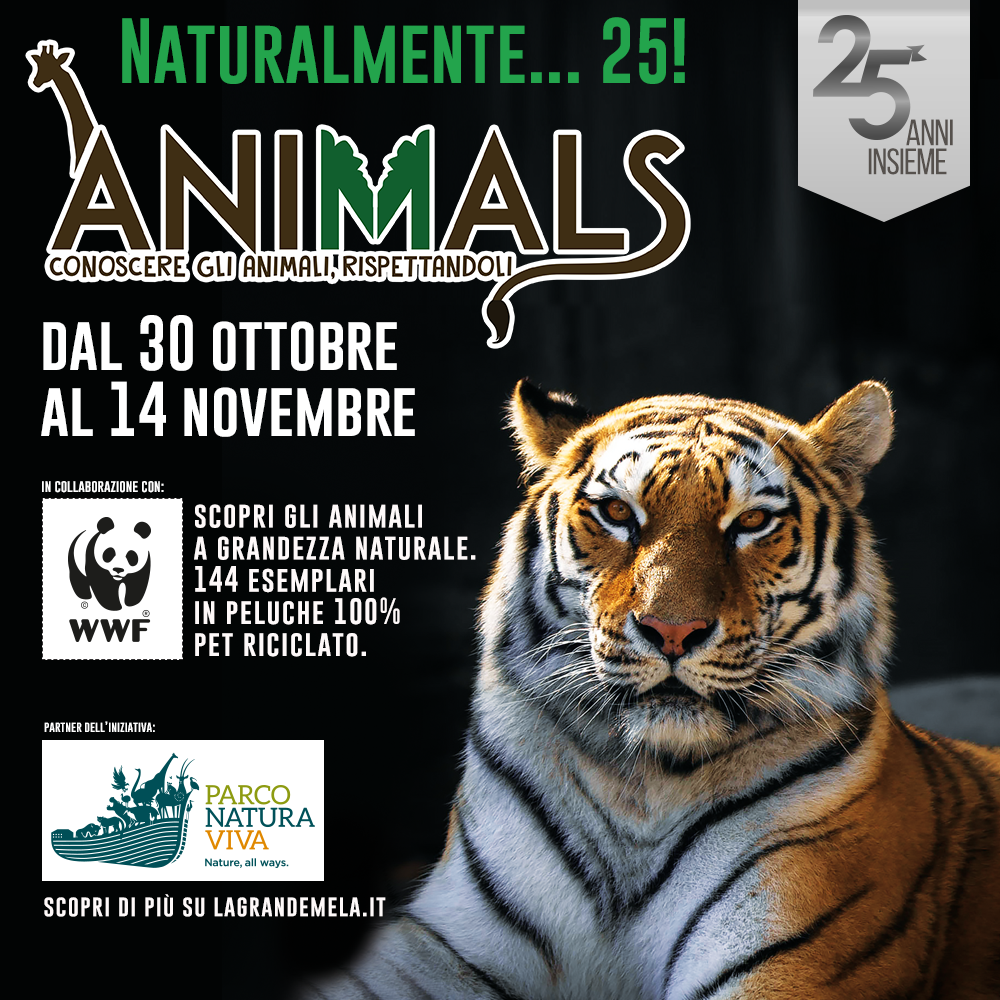 Da sabato 30 Ottobre il Centro ospiterà Animals, un parco tematico dedicato agli animali di tutto il mondo con il patrocinio del WWF e la collaborazione di Parco Natura Viva.