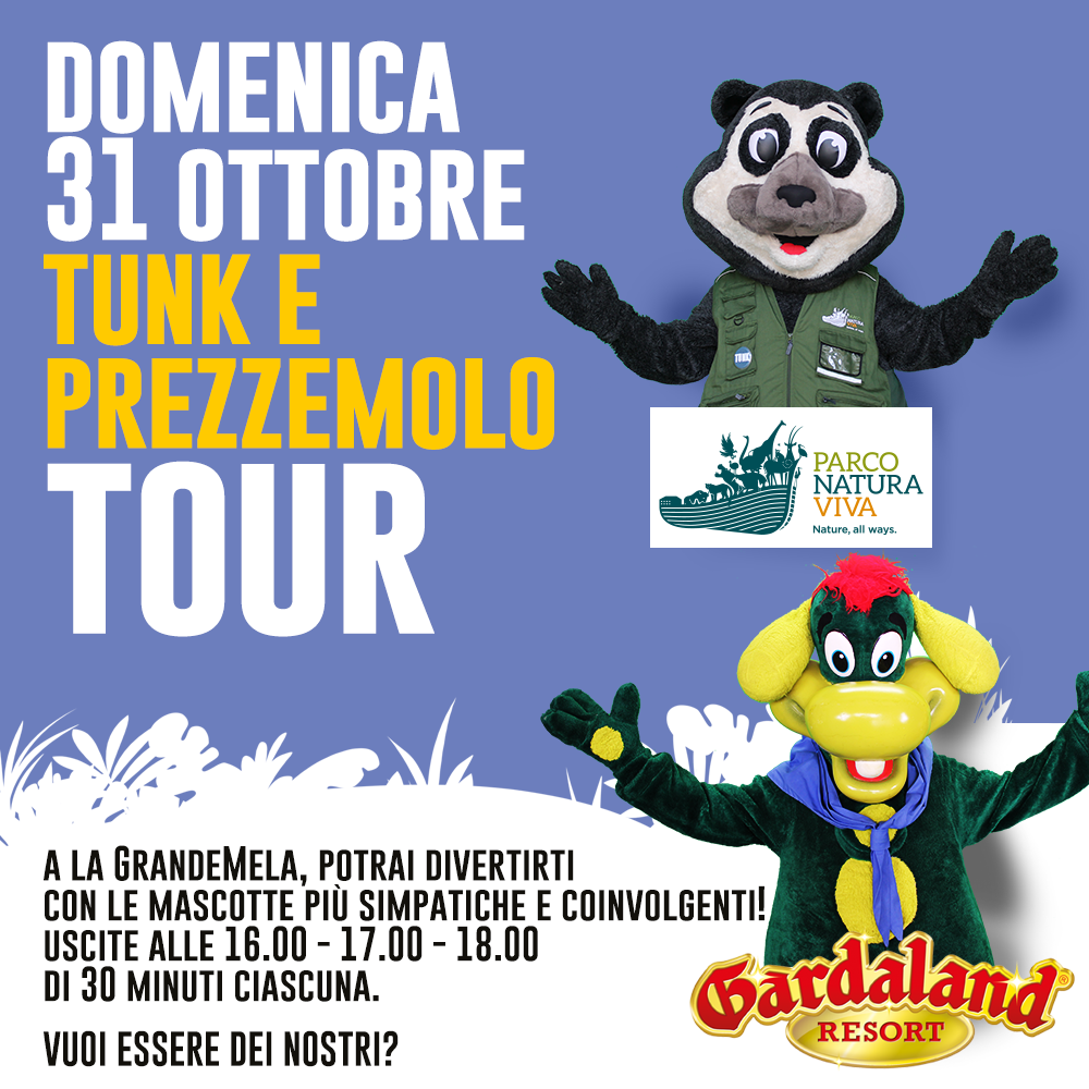 Domenica 31 Ottobre ti aspettiamo a La Grande Mela per il Tunk e Prezzemolo Tour! Divertiti con un Tour di 30 minuti in compagnia delle Mascotte più simpatiche e coinvolgenti