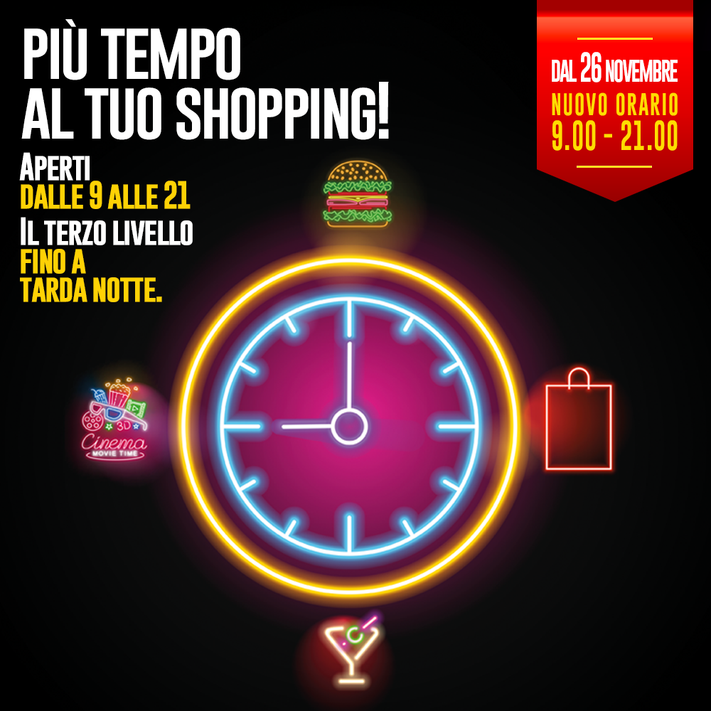 Dal 26 Novembre nuovo orario! Il Centro sarà aperto dalle 9.00 alle 21.00