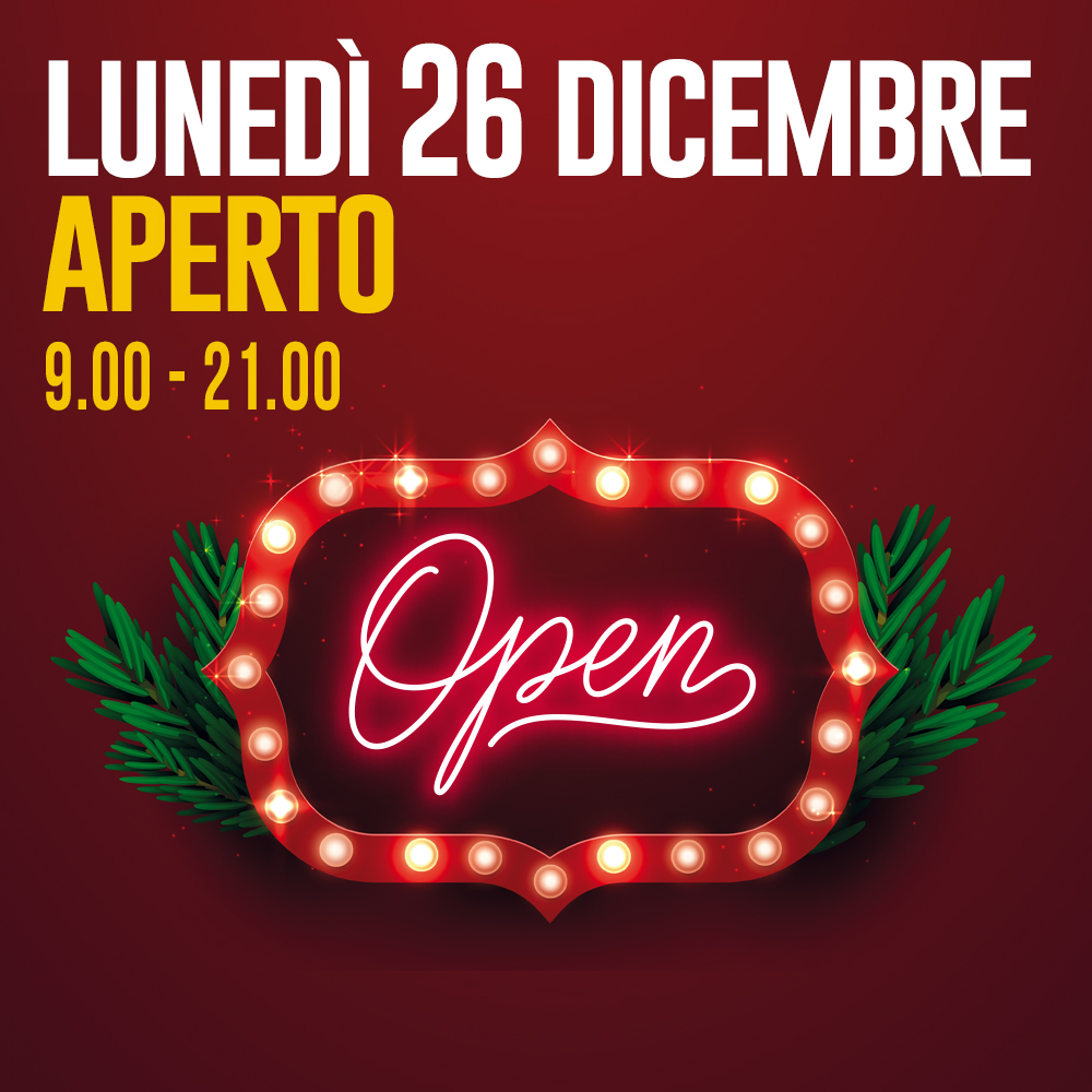 26 dicembre: aperto con orario regolare (9.00 - 21.00);