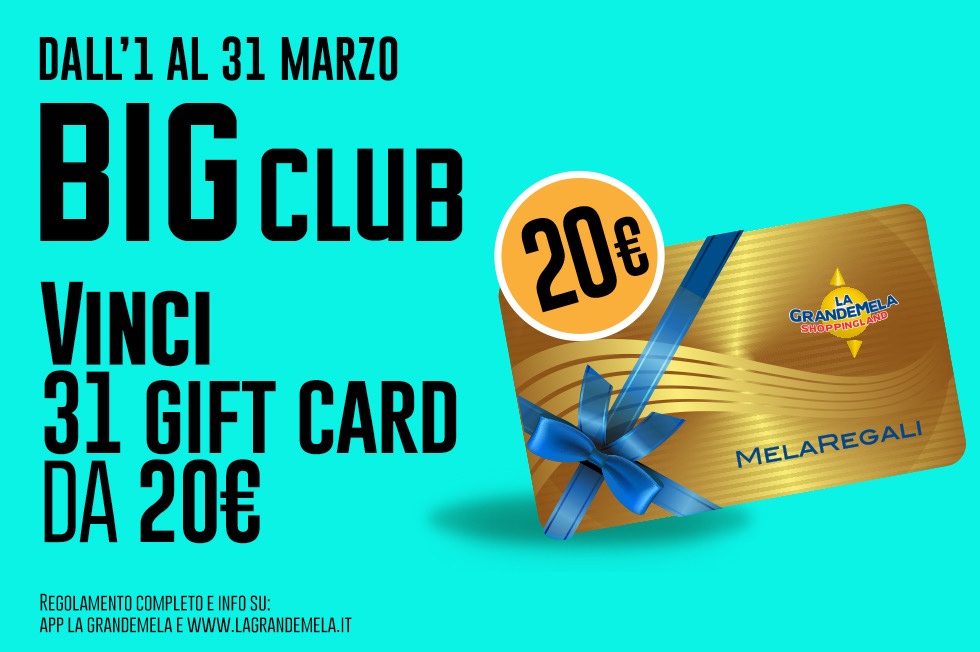 Fino al 31 marzo con i punti accumulati nel BIG CLUB puoi partecipare all'estrazione e vincere una gift card del valore di €20,00!
