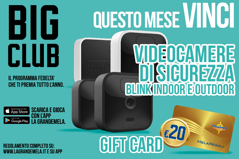 In palio 2 videocamere Blink outdoor, 2 Blink indoor e 31 gift card da 20€ da usare a La GrandeMela!