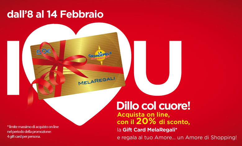 Acquista online con il 20% di sconto la Gift Card MelaRegali e regala al tuo Amore un Amore di shopping.