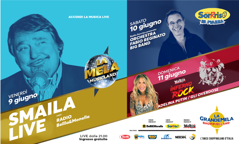 La voce di Umberto Smaila, la musica di Fabio Reginato Big Band e l'Inferno Rock di Adelina Putin sono i protagonisti di questo weekend targato La Mela MusicLand! Vi aspettiamo per vivere assieme questa estate a tutta musica! Vuoi conoscere tutti i concerti? Consulta il programma nella Sezione Eventi!