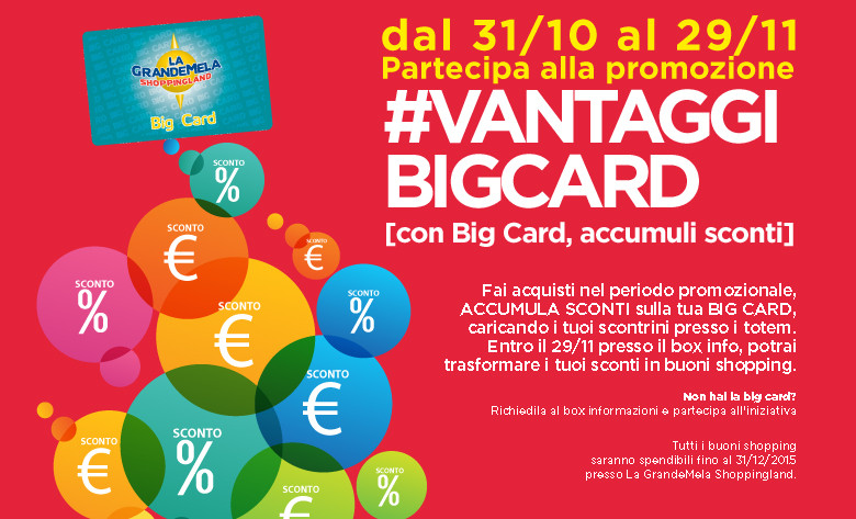 Fai acquisti nel periodo promozionale, ACCUMULA SCONTI sulla tua BIG CARD, caricando i tuoi scontrini presso i totem.