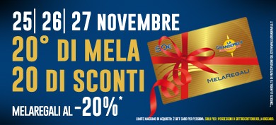 Black Friday da non perdere a La GrandeMela! Solo venerdì 28 novembre, acquistando una MelaRegali da 100€, La GrandeMela ti regala 20&euro (...)